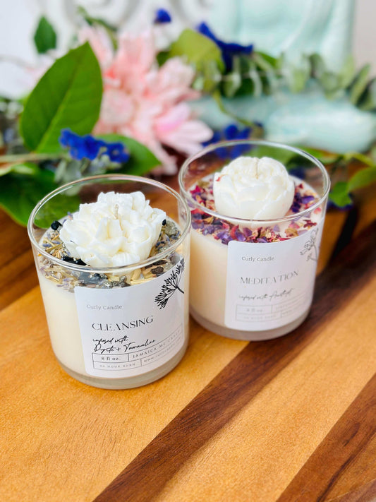 Intention candle with herbs & crystals