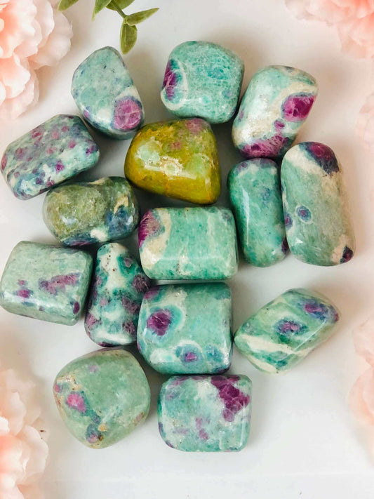 Ruby in fuchsite tumbled crystal