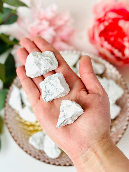 Raw White Howlite Stone, Rough white howlite, raw crystals and minerals